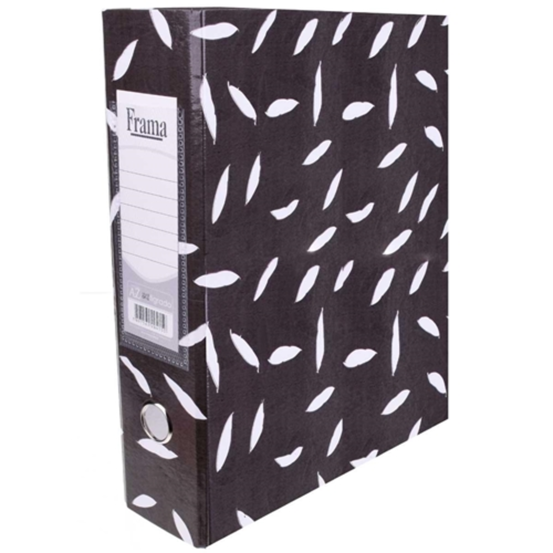 A Pasta Az Ofício Lombo Largo 8cm, com tamanho de 28×34,5 cm e design tigrado, é produzida pela Papel Frama, oferecendo uma solução prática e resistente para organização e arquivamento de documentos.